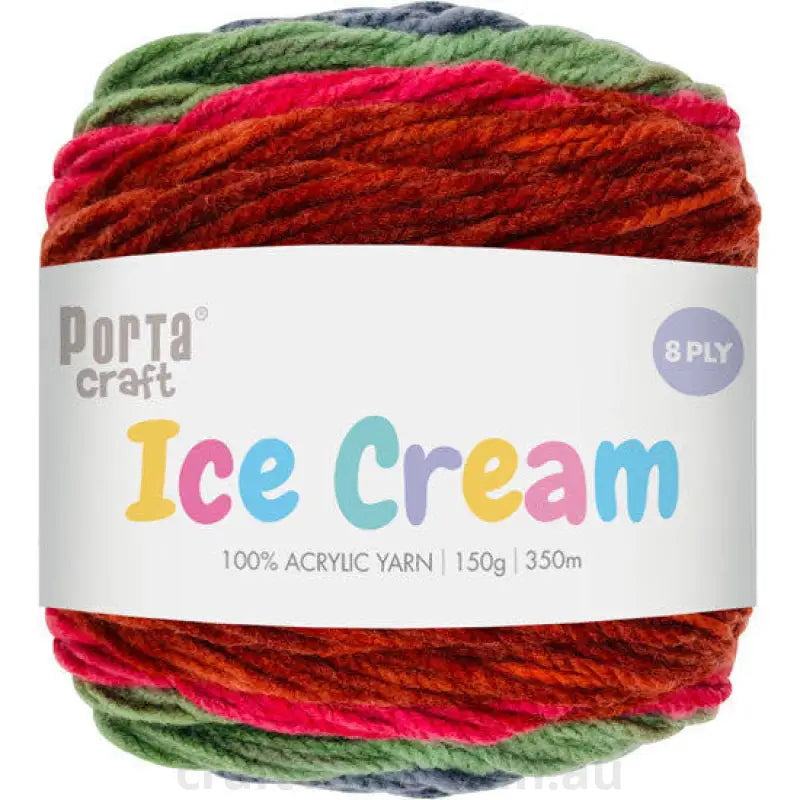 Tags: ice cream yarn, acrylic yarn, DK yarn, 8ply yarn, cake yarn, stripe yarn, beginner yarn, Porta Craft, earthworks yarn