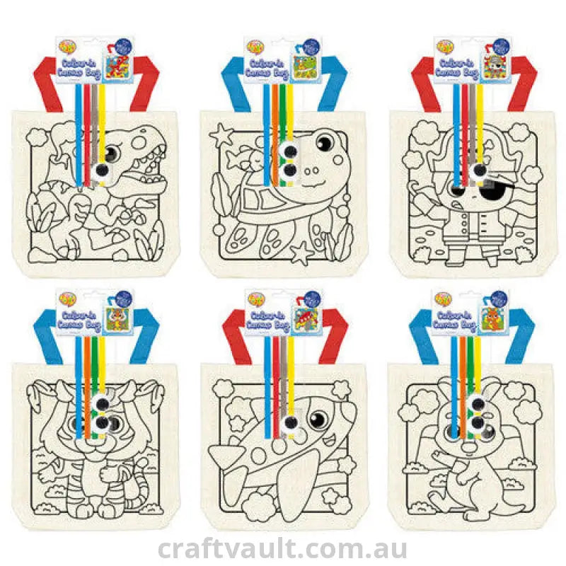 Colour In Canvas Bags Boys 6 Assorted (SKU: CR0470) is a fun and versatile craft item ideal for creative projects and DIY sessions at home or in classrooms.
