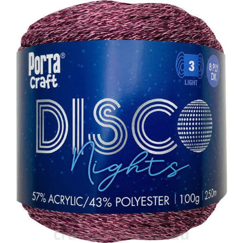 Disco Nights 100g 250m Tanzanite (SKU: 195253) turns every stitch into a statement. With a subtle shimmer and a smooth hand-feel, this 8ply yarn is made from a luxe blend of 57% acrylic and 43% polyester. The sparkle strand woven through each ball adds light-catching magic to scarves, shawls, and standout pieces. Lightweight yet showstopping, Disco Nights brings the glam. No glitter fallout, just fibre that shines.