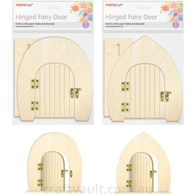 Fairy Door Wooden Hinged 2 Assorted (SKU: 172919) is a miniature wooden fairy door — a whimsical crafting base that sparks imagination and storytelling. Perfect for adding magic to gardens, bedrooms, or bookshelves.