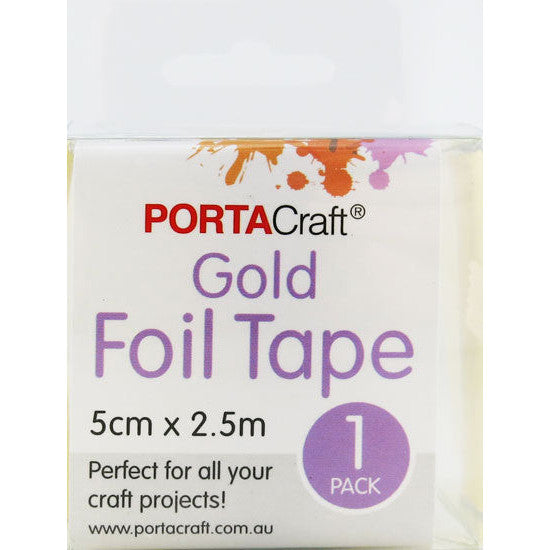 Foil Tape 50mm x 2.5m - Gold (SKU: 172933) by Porta Craft is a bold metallic tape that adds instant shine. The wide 50mm roll is perfect for statement borders, party décor and standout craft details.