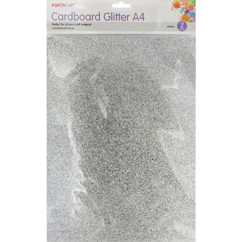 Glitter Cardboard A4 2pk Silver (SKU: 163115) is a high-quality 300gsm A4 card pack thats perfect for everyday craft and stationery projects. Use it to make unique cards, invitations, posters, decorations, or classroom creations. Acid-free and smooth to work with, its a versatile choice for all things papercraft.