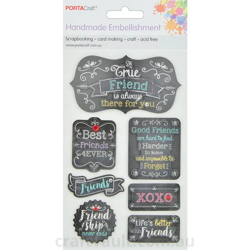 Handmade Glitter Embellishment Chalkboard Friends (SKU: 140925) is a premium handmade glitter embellishment designed to add sparkle and meaning to your creative projects. Perfect for adding heartfelt detail to cards, scrapbooks, and DIY gifts.