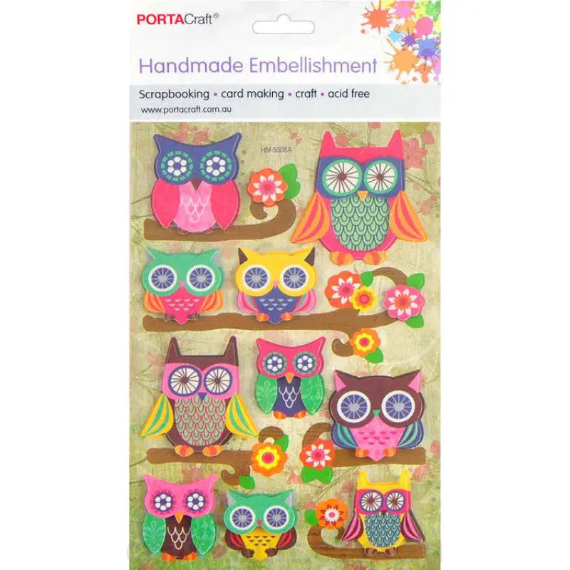 Handmade Glitter Embellishment Owls (SKU: 084465.11C) is a handmade glitter embellishment a unique, eye-catching decorative element perfect for card making or scrapbooking.