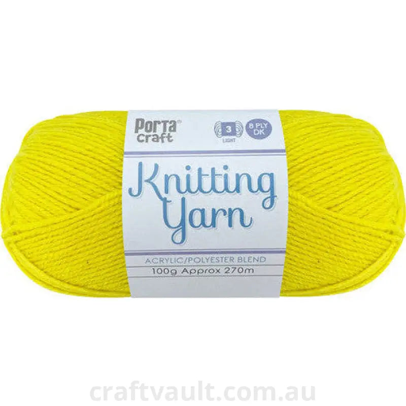 Tags: knitting yarn, 8ply yarn, acrylic polyester blend yarn, lightweight yarn, beginner friendly, solid colour yarn, Porta Craft, solid cadmium yarn