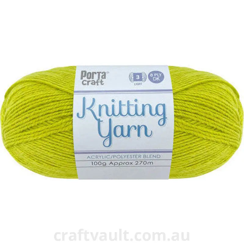 Tags: knitting yarn, 8ply yarn, acrylic polyester blend yarn, lightweight yarn, beginner friendly, solid colour yarn, Porta Craft, solid chartreuse yarn