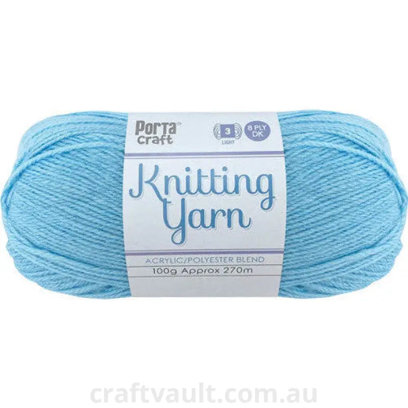 Tags: knitting yarn, 8ply yarn, acrylic polyester blend yarn, lightweight yarn, beginner friendly, solid colour yarn, Porta Craft, solid sky blue yarn