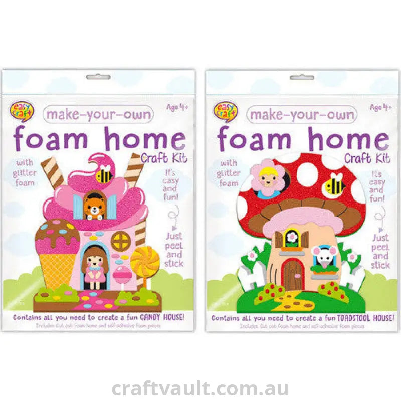 MYO Home Foam Craft Kit 2 Assorted (SKU: CR0386) is a fun and creative craft kit for kids to design and decorate their own foam candy house or toadstool house. Perfect for sparking imagination and encouraging hands-on play.