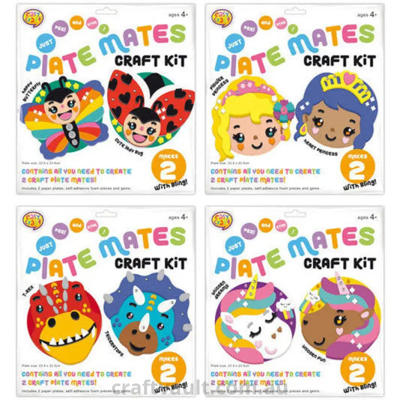 Plate Mates Craft Kit 2pk 4 Assorted (SKU: CR0217) is a colourful and engaging craft kit perfect for kids to create adorable animal, princess, and unicorn face plates. Designed for easy, mess-free crafting with peel-and-stick foam pieces and fun bling accessories.