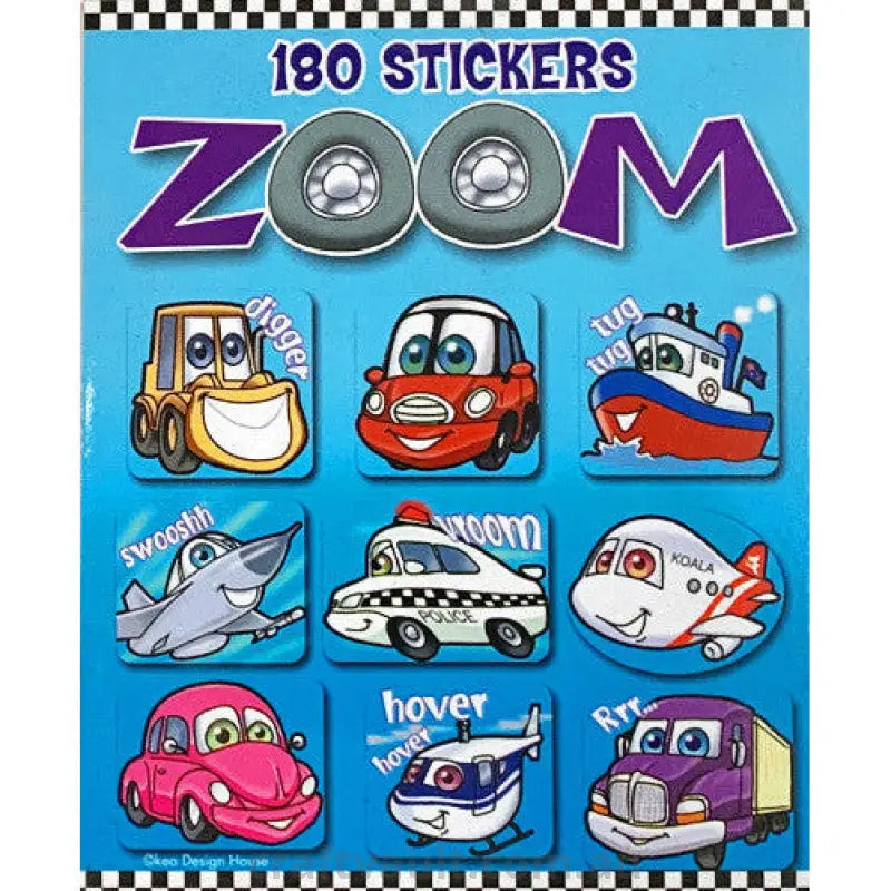 Sticker Books Zoom 180 Stickers (SKU: F05D34) is a fun and reusable sticker book packed with pages of vibrant themed designs, perfect for on-the-go creativity or keeping young hands busy.