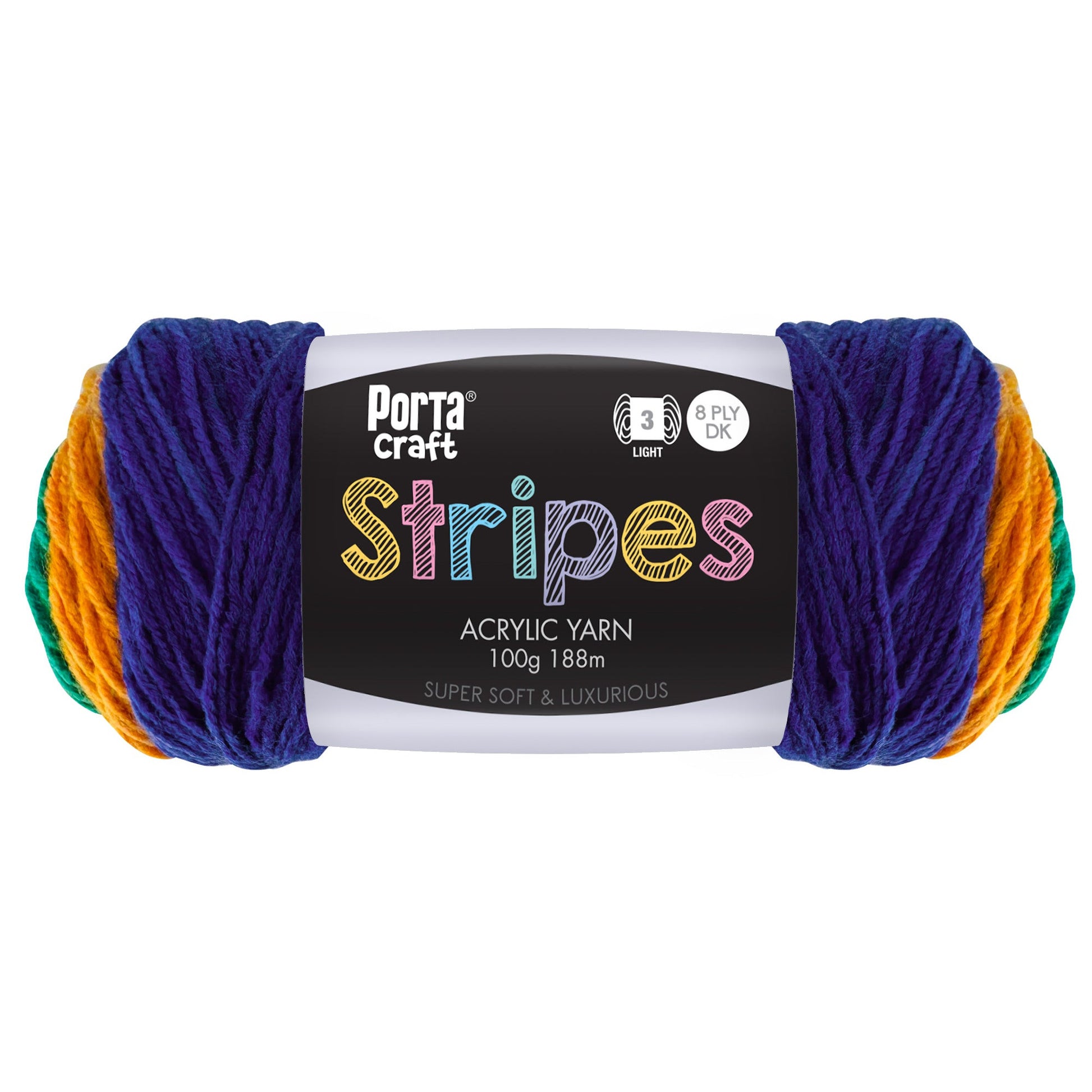 Tags: acrylic yarn, 8ply yarn, striped yarn, Porta Craft, beginner yarn, colourful yarn, favourite